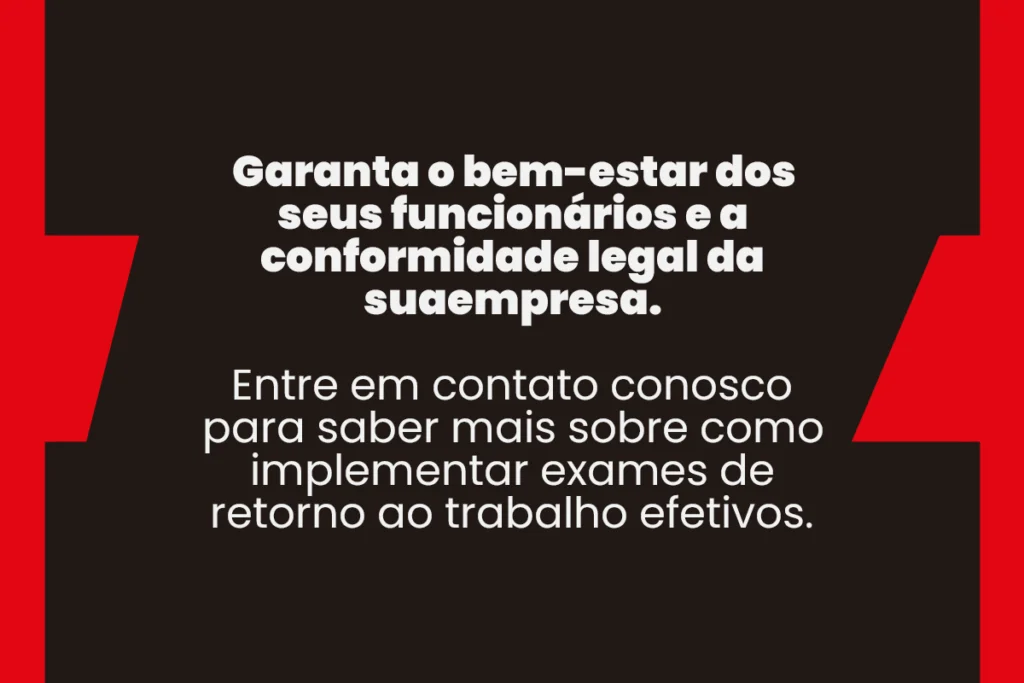 Esse exame avalia a recuperação do funcionário e garante que ele está apto a retomar suas funções sem risco à sua saúde ou à segurança de seus colegas.
